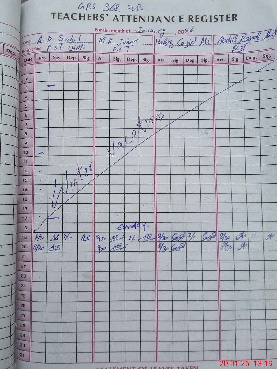 | No. of Students Present - Male | 0 | 0 | 34 | 37 | 31 | 38 | 30 | 25 | 195 | |||||||