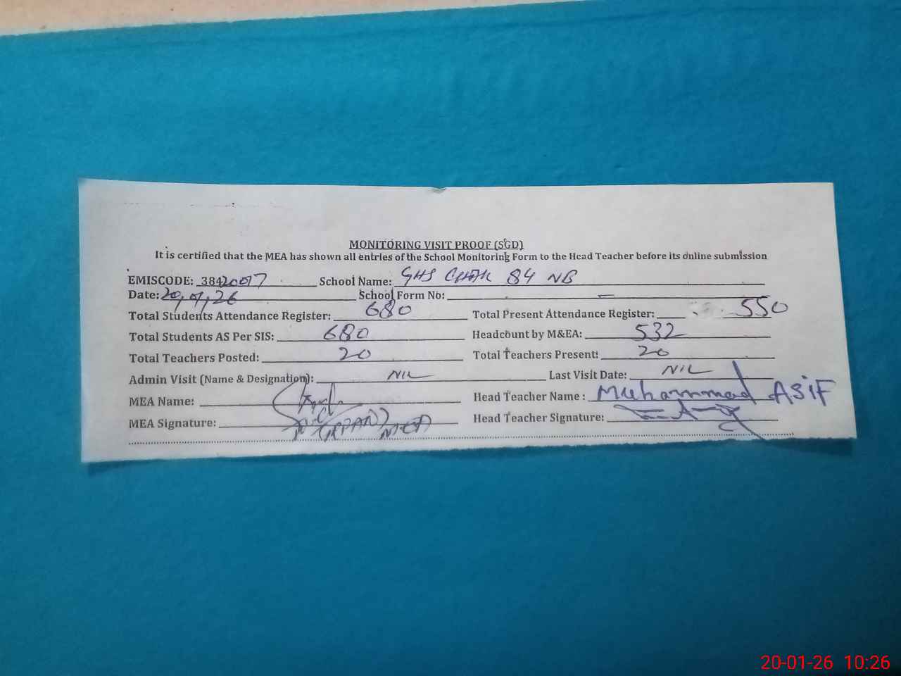 | EMIS Code: 38420017 | Name of School: GHS CHAK NO.84 NB | |||