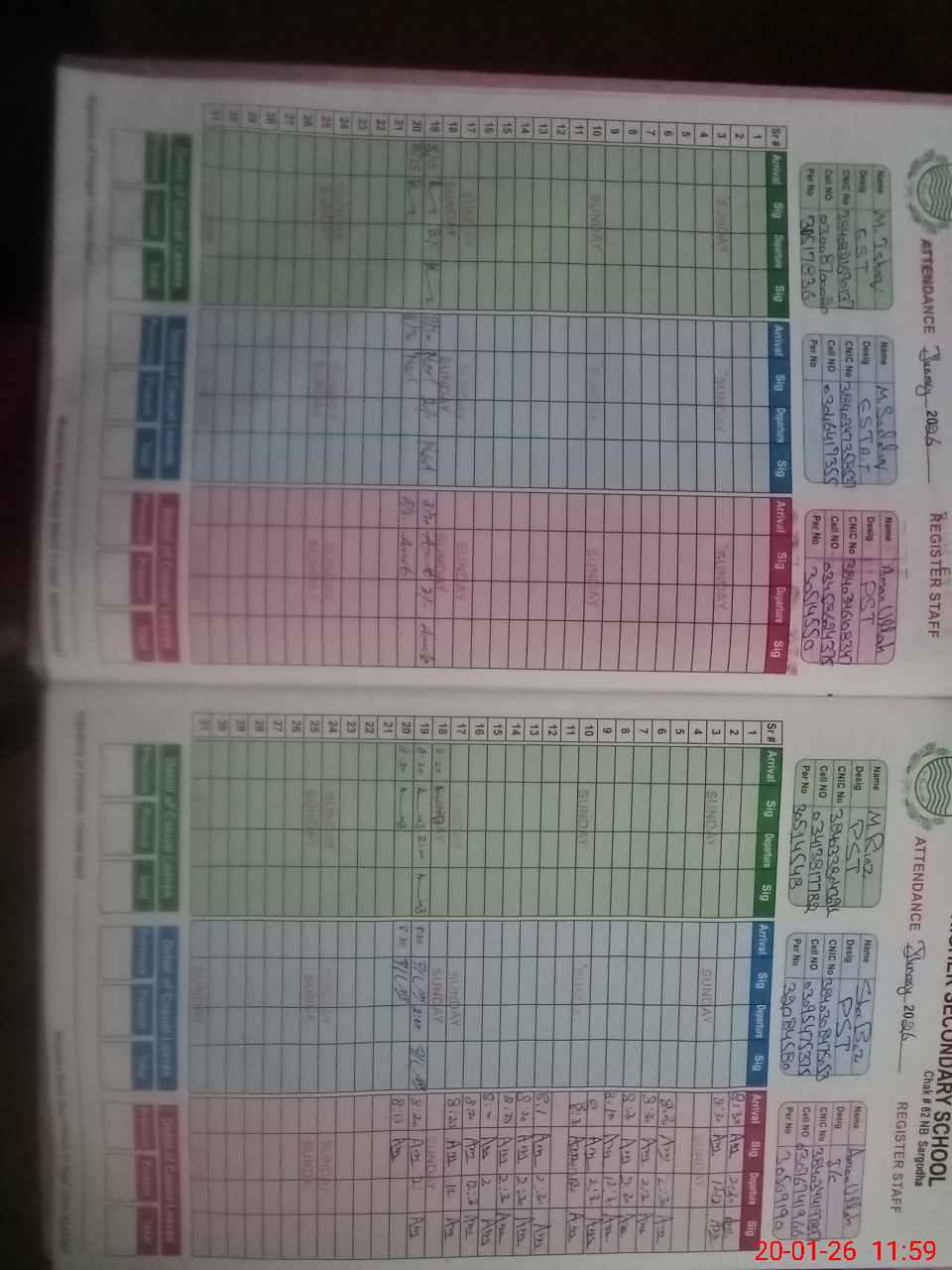 | CNIC | Full Name | Designation | R/C | Absence during last cal. month |