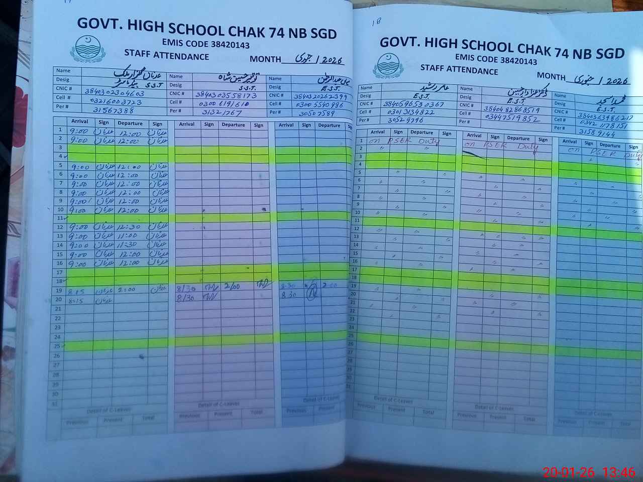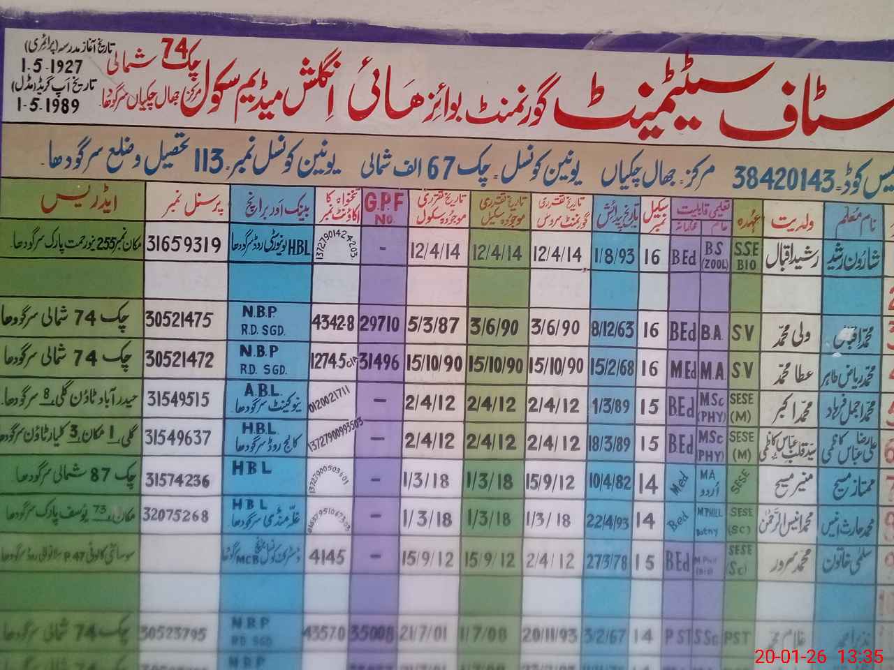 | EMIS Code: 38420143 | Name of School: GHS CHAK NO.74 NB | |||