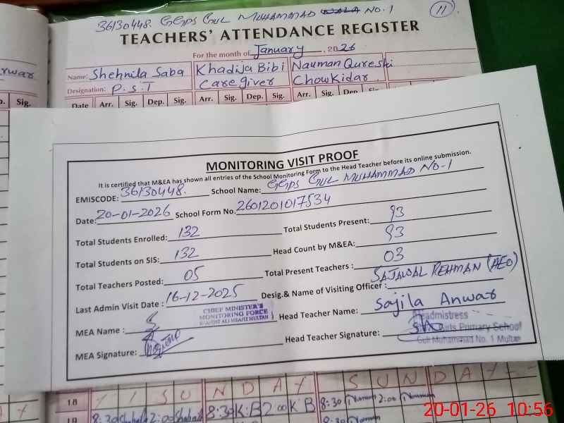 | Attendance Register | Head Teacher | MEA with School | Visit Proof |
