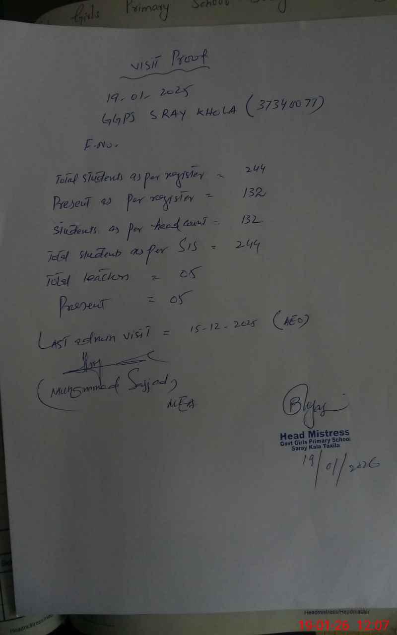 | EMIS Code: 37340077 | Name of School: GGPS SARAY KHOLA | |||
