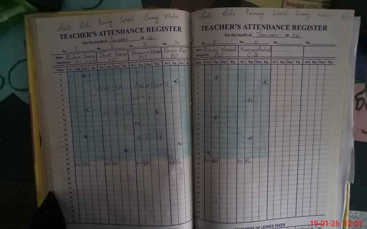| Attendance Register | Head Teacher | MEA with School | Visit Proof |