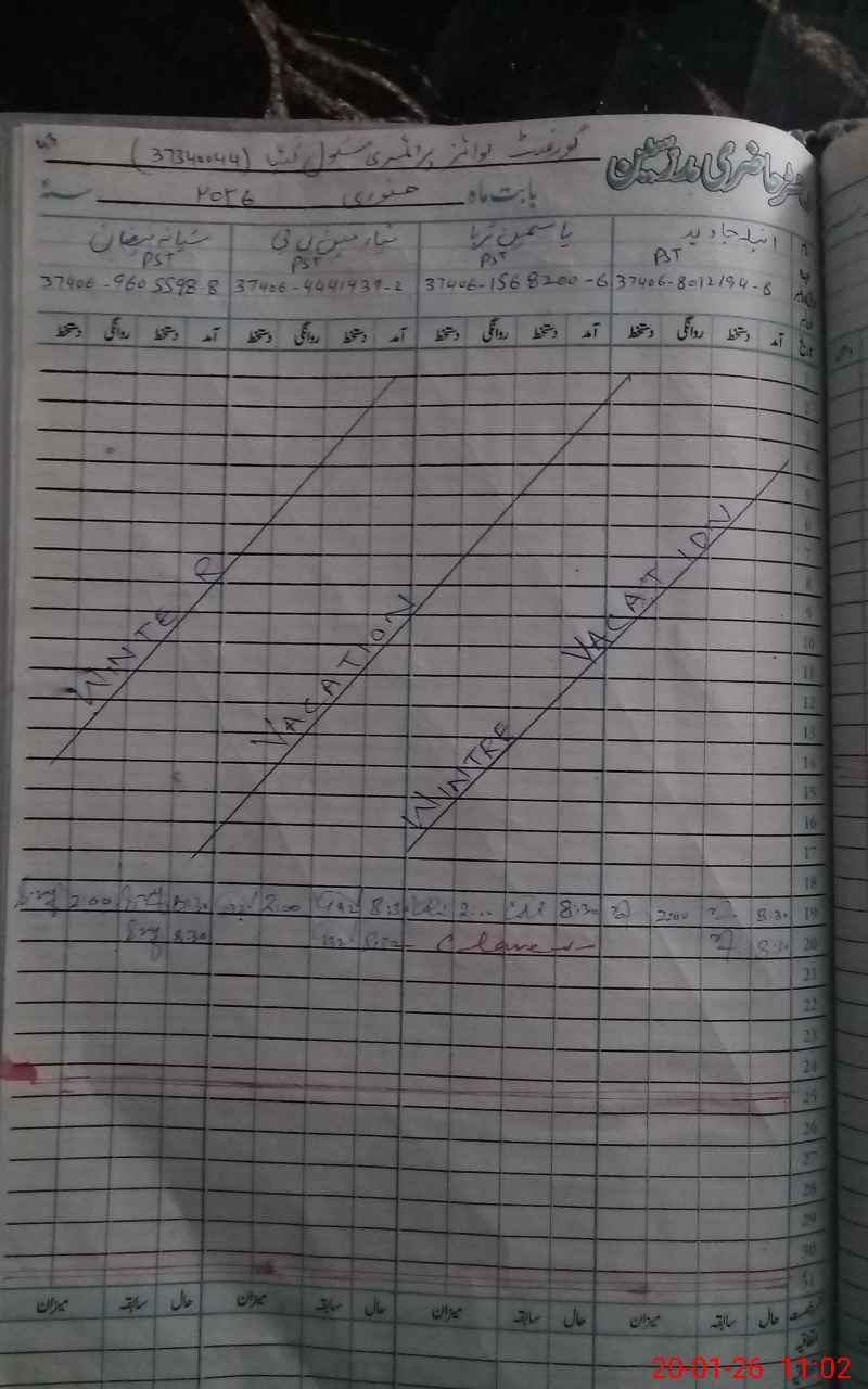 | CNIC | Full Name | Designation | R/C | Absence During Last Calender Month |