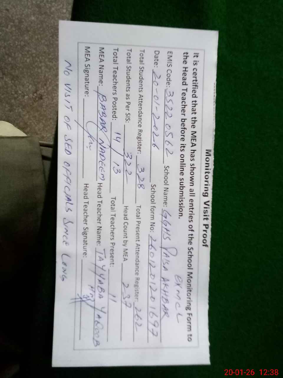 | EMIS Code: 35220562 | Name of School: GGHS PAISA AKHBAR NEW ANARKALI (EX-MCL) | |||