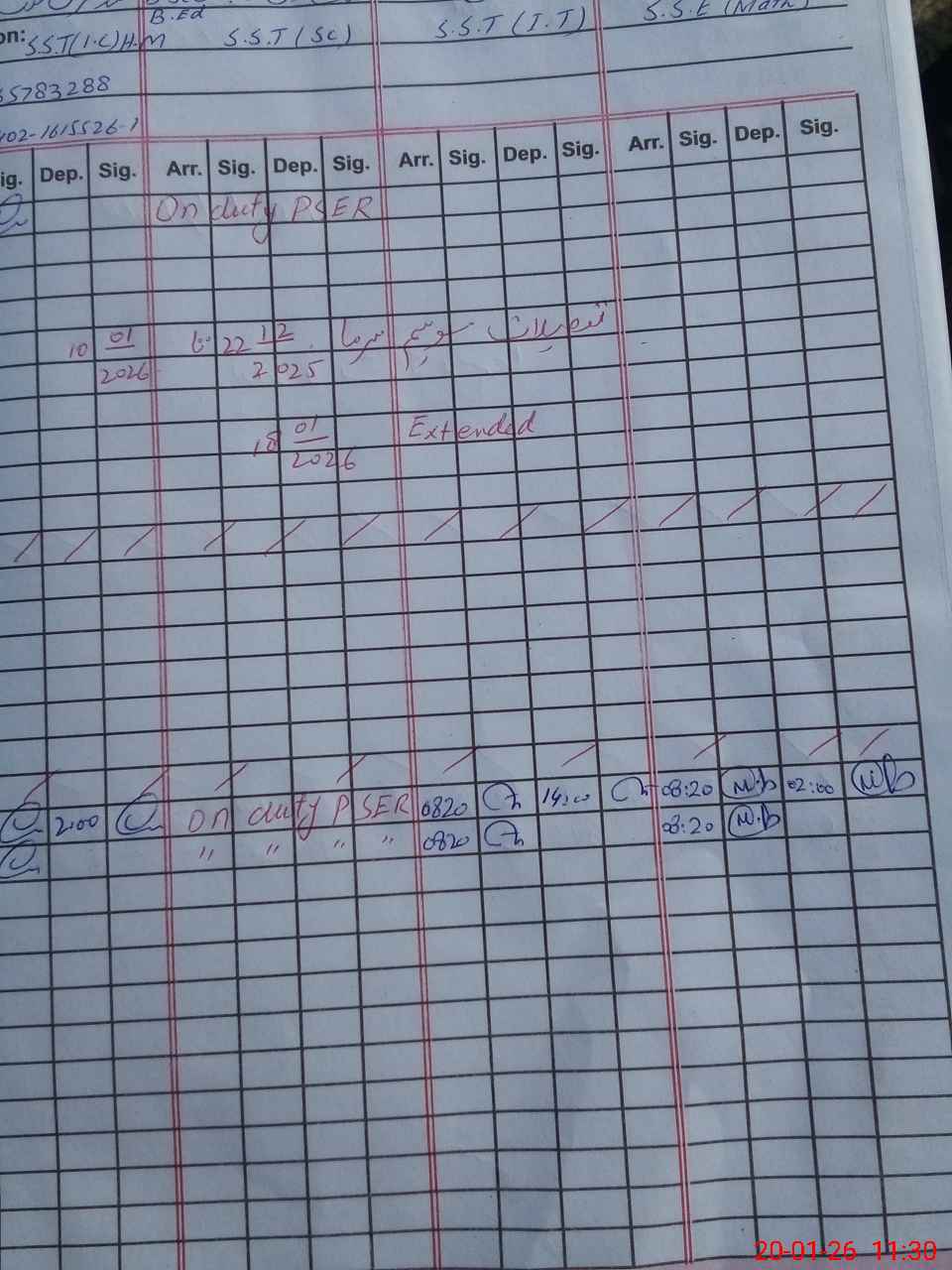 | CNIC | Full Name | Designation | R/C | Absence During Last Calender Month |