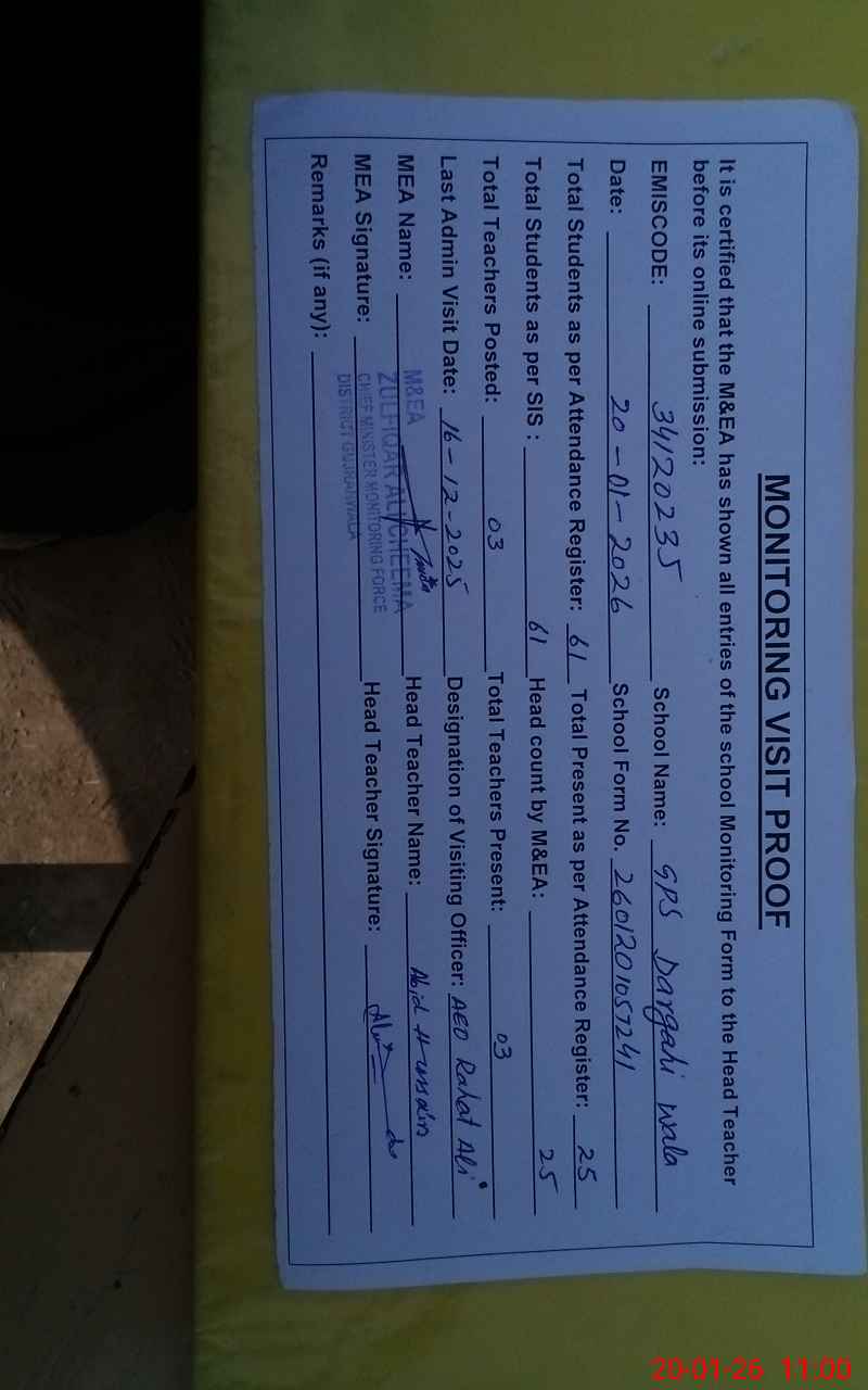 | EMIS Code: 34120235 | Name of School: GPS DURGAHI WALA | |||