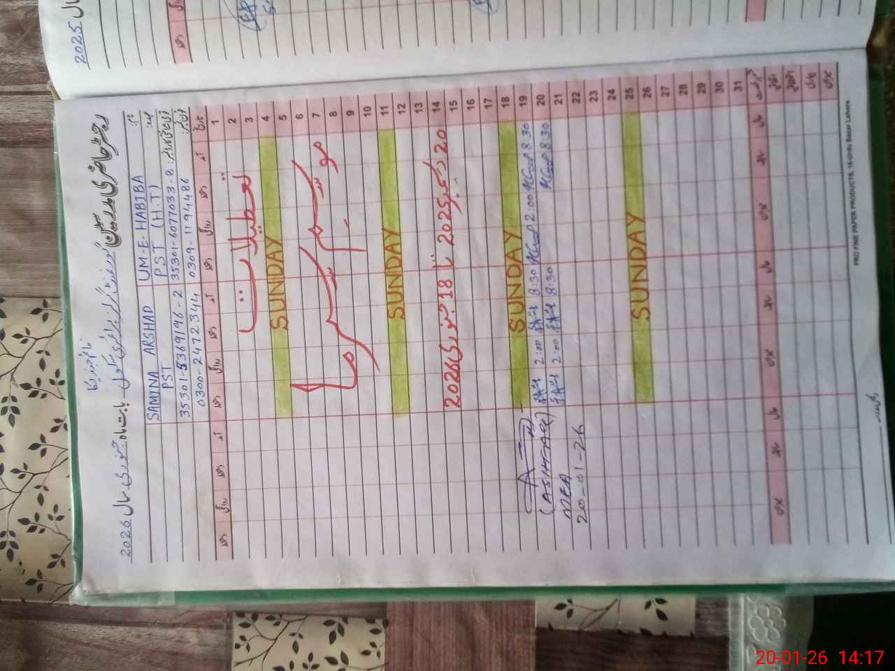 | Name: Um**** Ha**** Designation: (School Headmaster's/Headmistress's) PST Phone/Cell Number: 03**** |