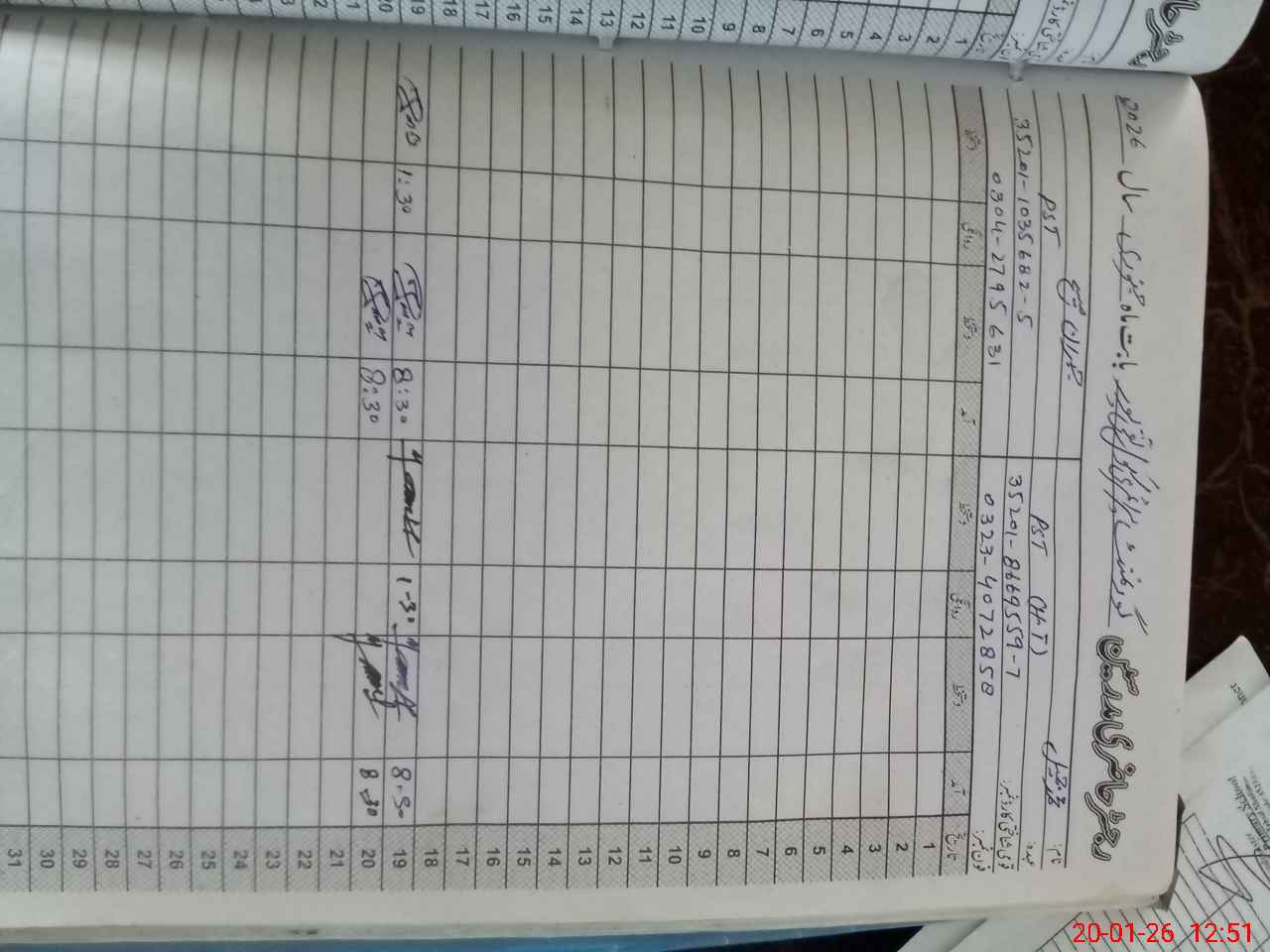 | CNIC | Full Name | Designation | R/C | Absence During Last Calender Month |