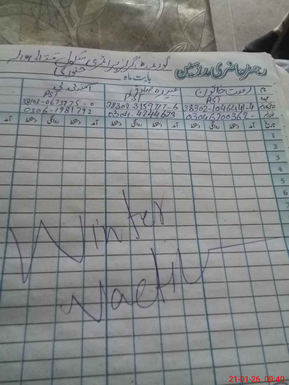 | Name: Am**** Bi**** Designation: (School Headmaster's/Headmistress's) PST Phone/Cell Number: 03**** |