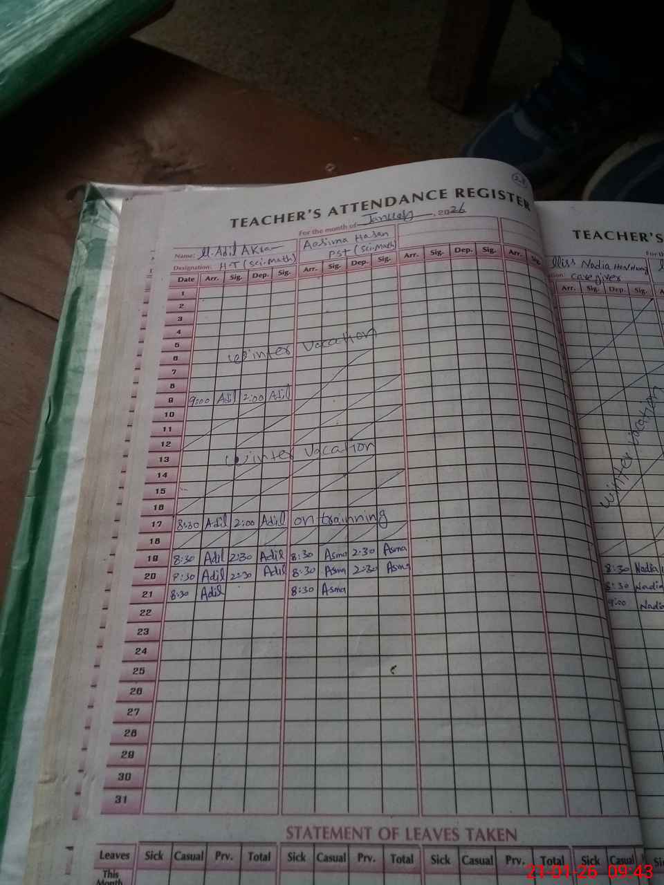 | Leave | Duty | Absent | Maternity | Medical | Ex- Pak |