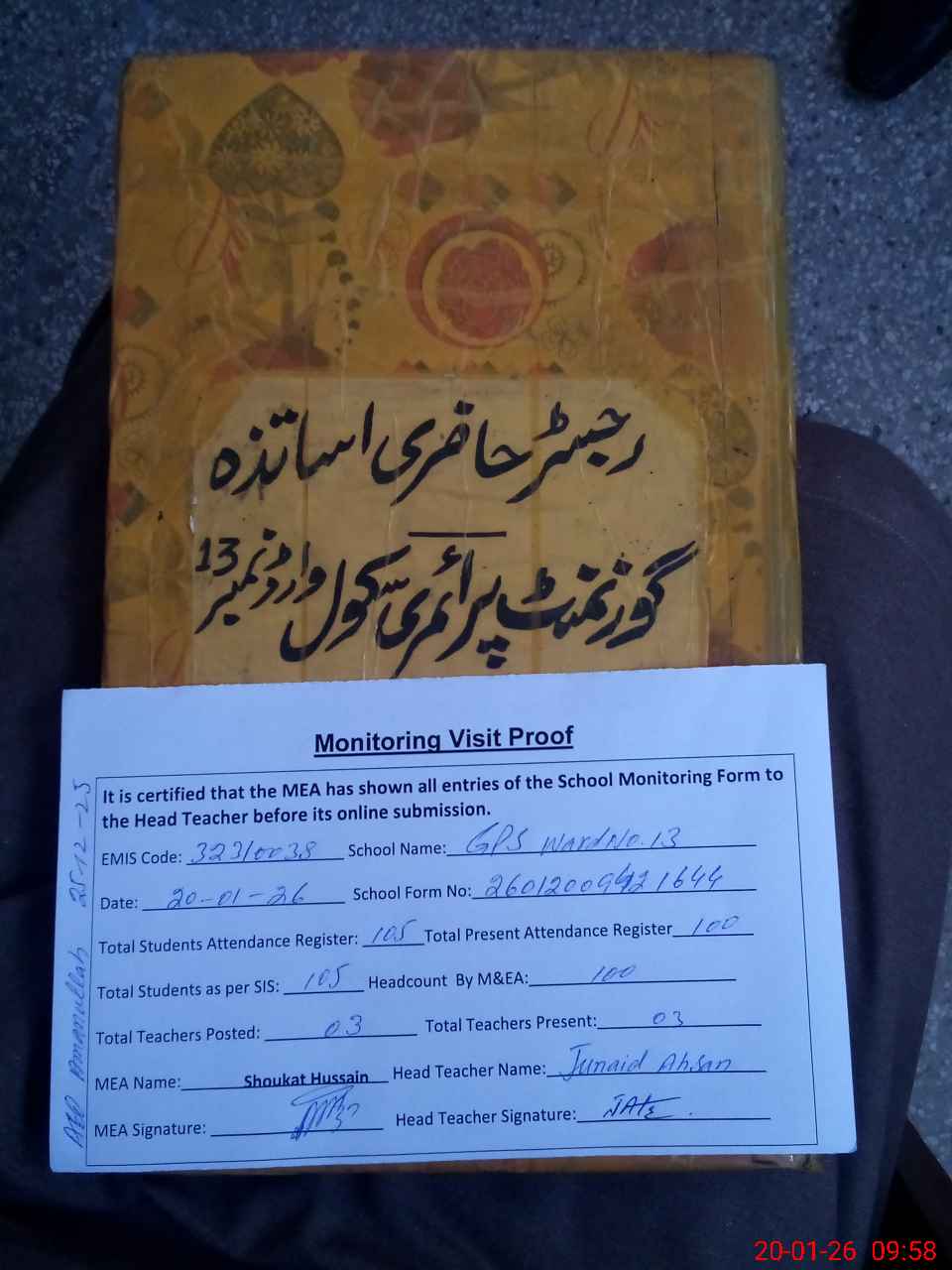 | EMIS Code: 32310038 | Name of School: GPS WARD NO. 13 ALIPUR | |||