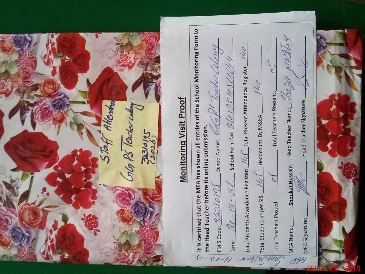 | EMIS Code: 32310195 | Name of School: GGPS TEACHER COLONY | |||
