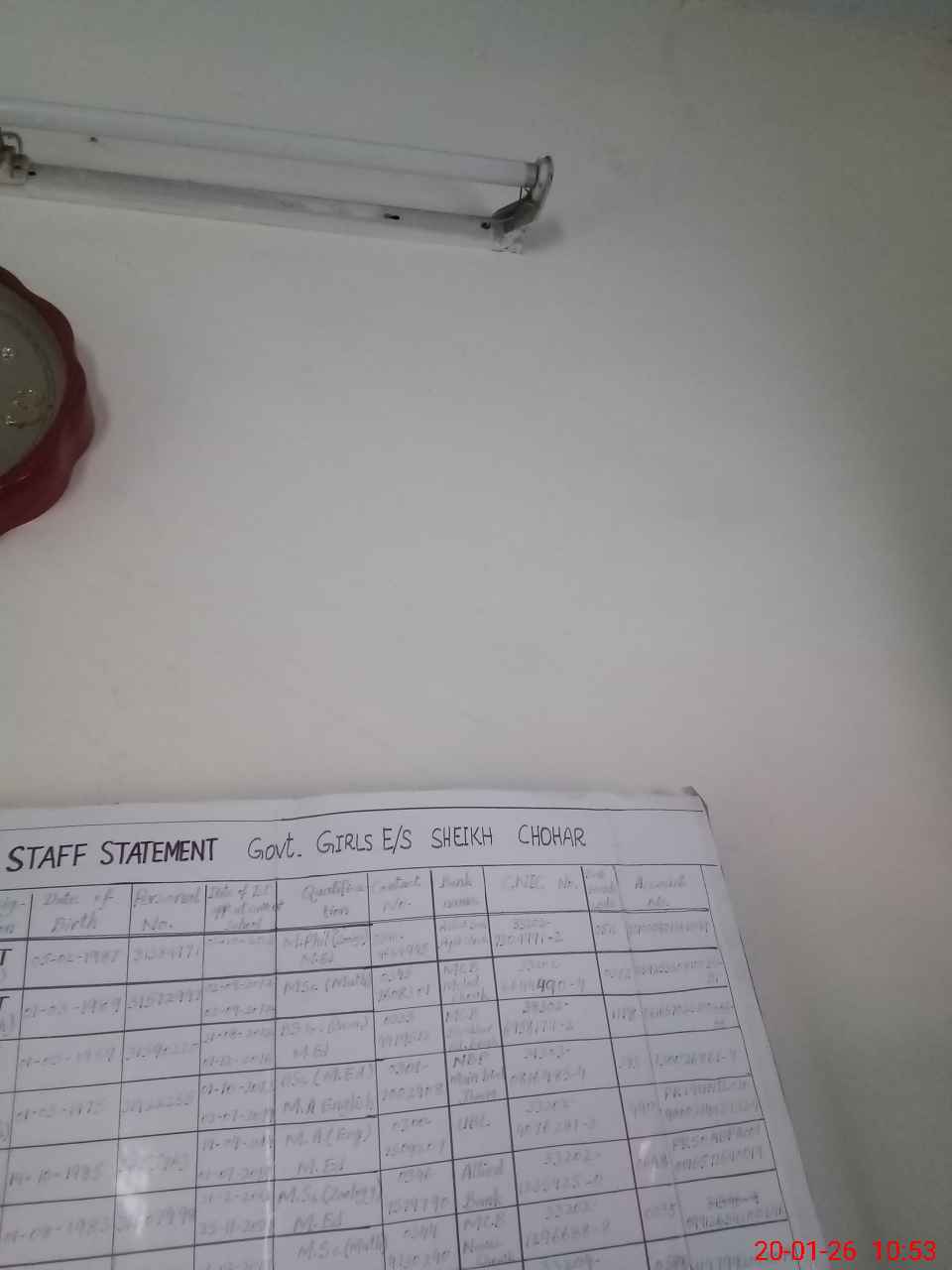 | CNIC | Full Name | Designation | R/C | Absence During Last Calender Month |