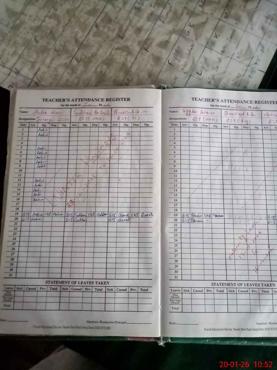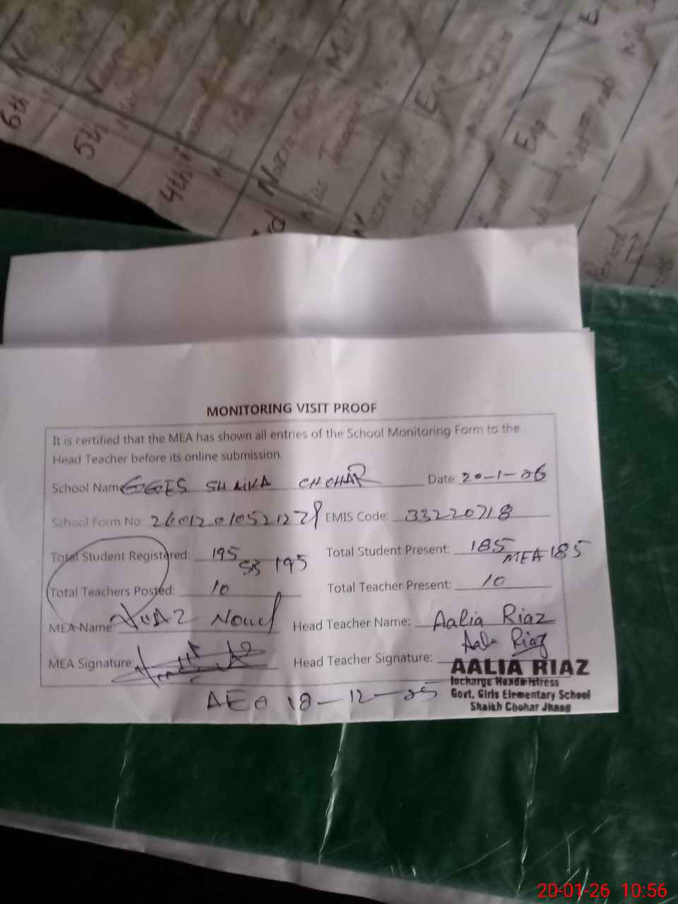 | Attendance Register | Head Teacher | MEA with School | Visit Proof |