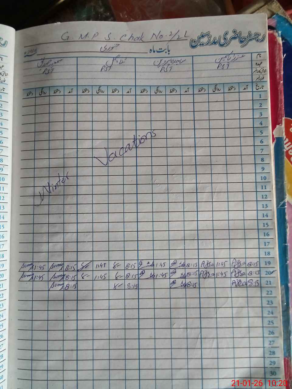 | Name: AZ**** YA**** Designation: (School Headmaster's/Headmistress's) PST Phone/Cell Number: 03**** |