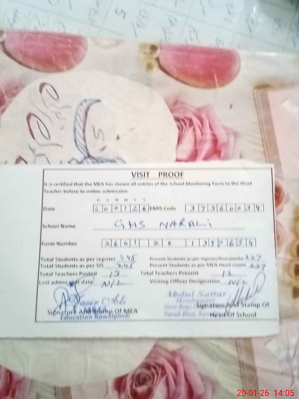 | Attendance Register | Head Teacher | MEA with School | Visit Proof |