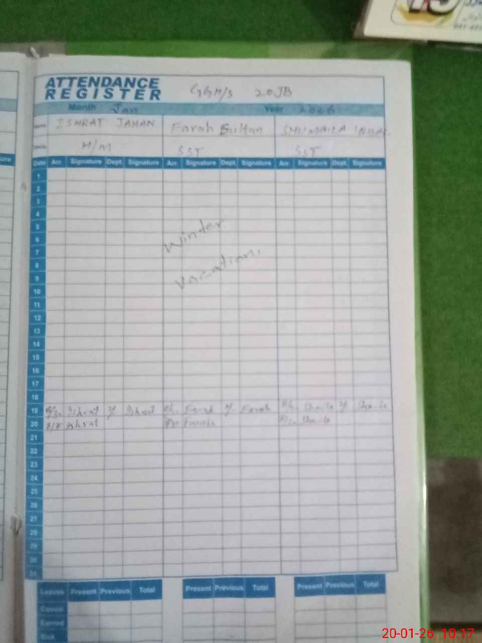 | Monitoring Date: 20-01-2026 | Start Time: 20-01-2026 09:35 AM | End Time: 20-01-2026 10:20 AM | Name of MEA: Ma**** Al**** | |
