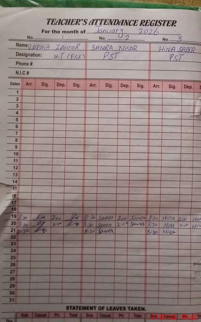 | Name: LA**** ZA**** Designation: (School Headmaster's/Headmistress's) ESE (ARTS) Phone/Cell Number: 03**** |