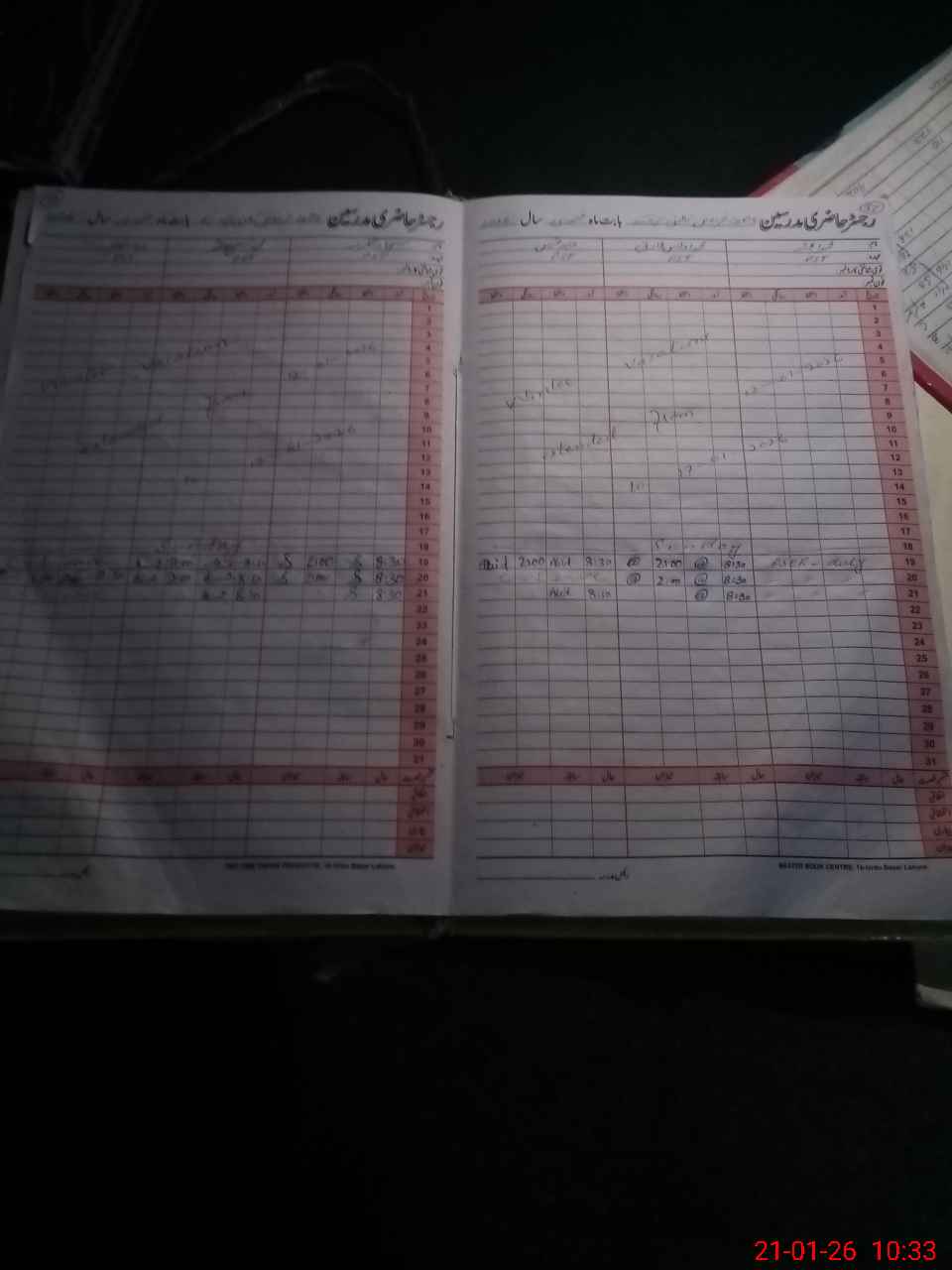 | CNIC | Full Name | Designation | R/C | Absence During Last Calender Month |