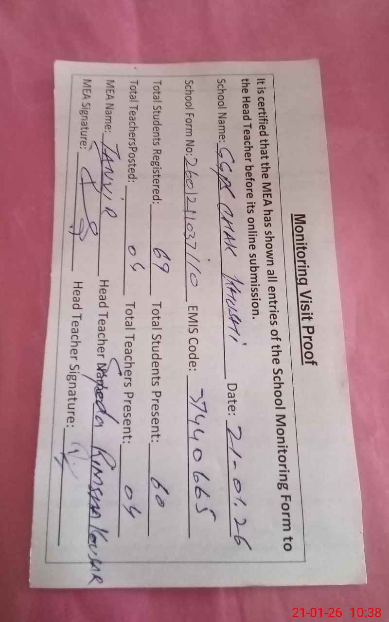 | Attendance Register | Head Teacher | MEA with School | Visit Proof |