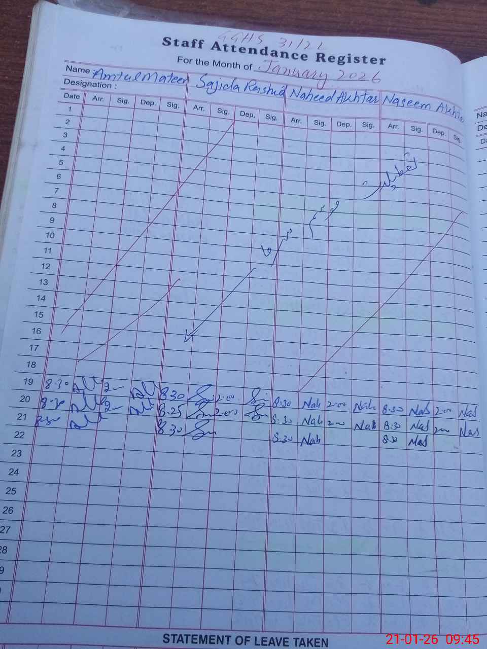 | CNIC | Full Name | Designation | R/C | Absence During Last Calender Month |