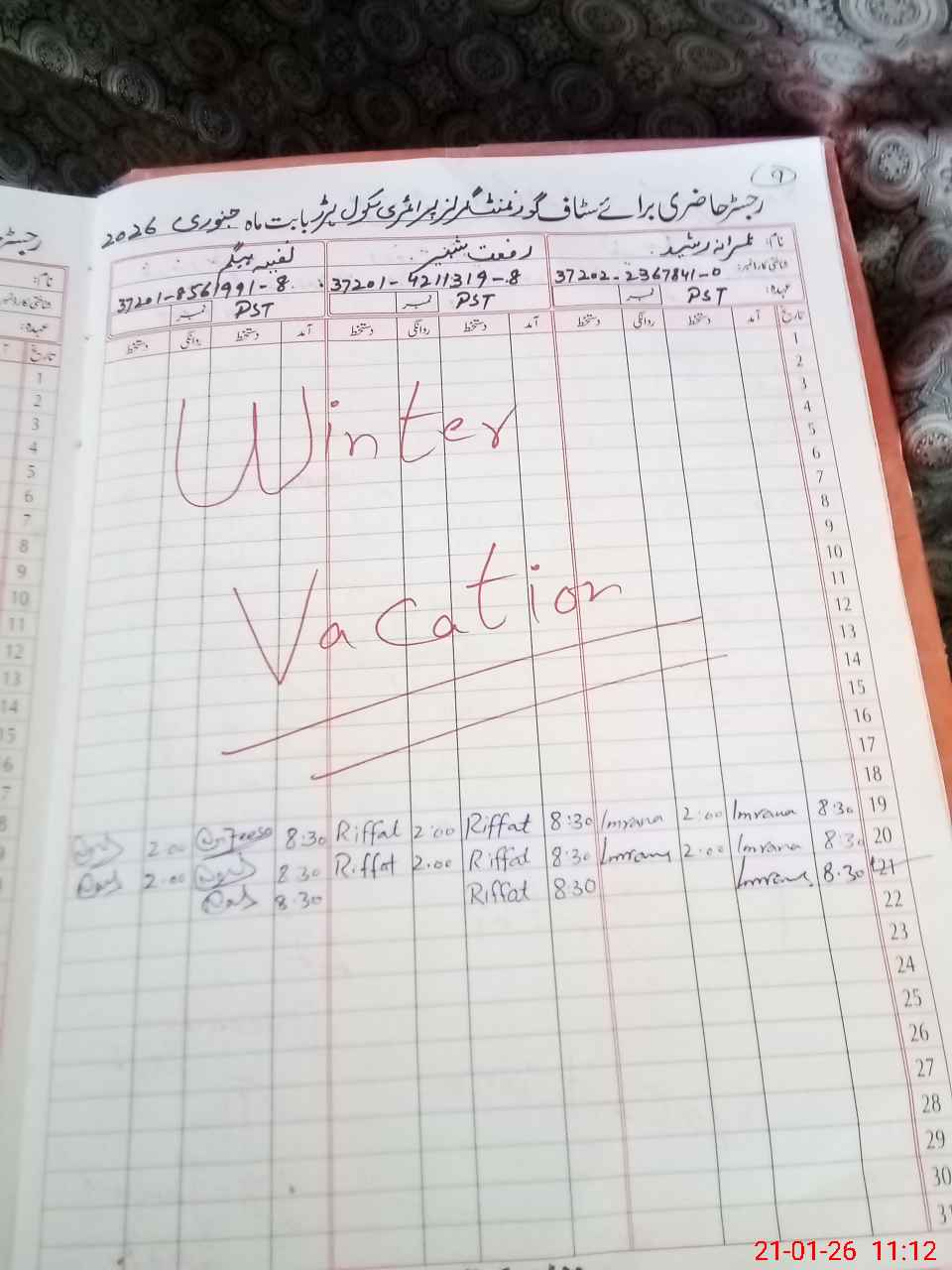 | Name: Im**** Ra**** Designation: (School Headmaster's/Headmistress's) HEADMISTRESS Phone/Cell Number: 03**** |