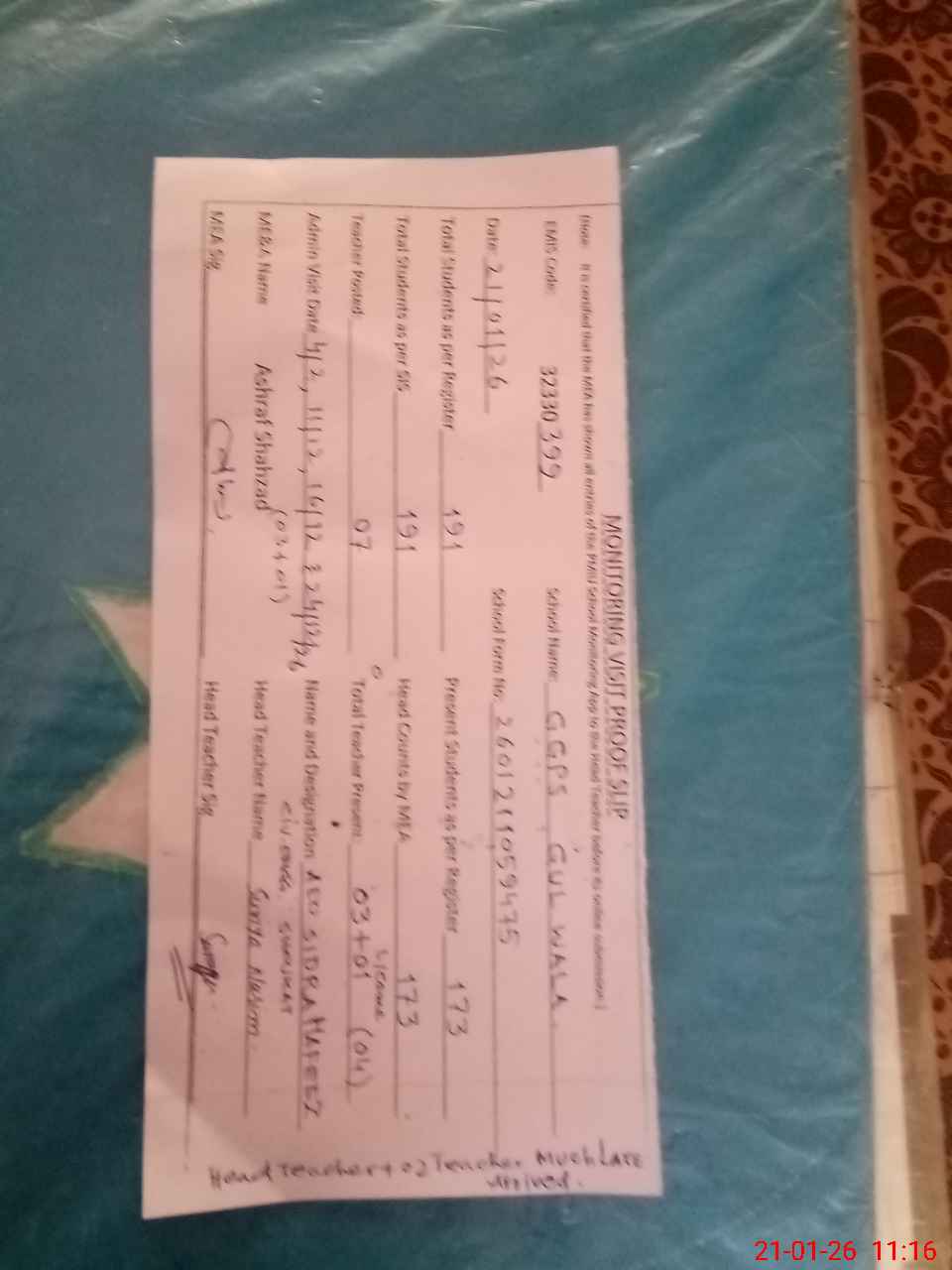 | EMIS Code: 32330399 | Name of School: GGPS GULL WALA | |||