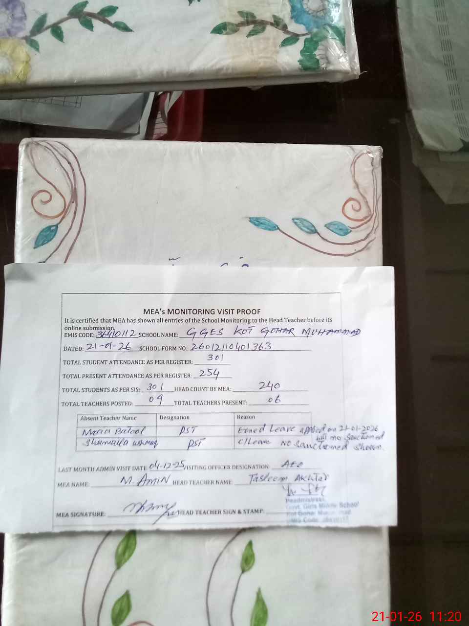 | EMIS Code: 36410112 | Name of School: GGES KOT GOHAR MUHAMMAD, SARAI SIDHU | |||