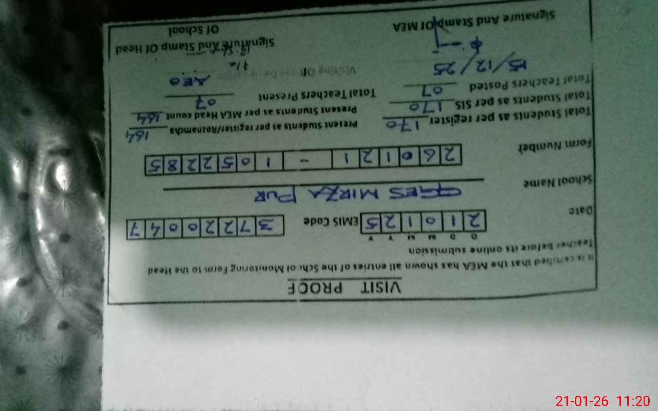 | EMIS Code: 37220047 | Name of School: GGES MIRZA PUR | |||