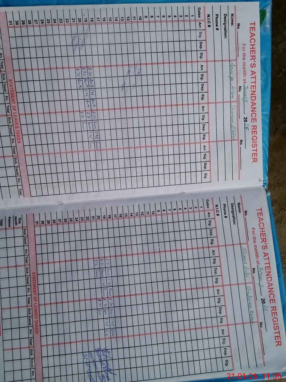 | Name: An**** As**** Designation: (School Headmaster's/Headmistress's) PST Phone/Cell Number: 03**** |