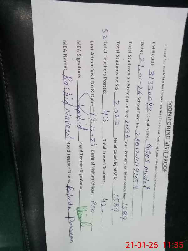 | EMIS Code: 31330043 | Name of School: GGHS MODEL | |||