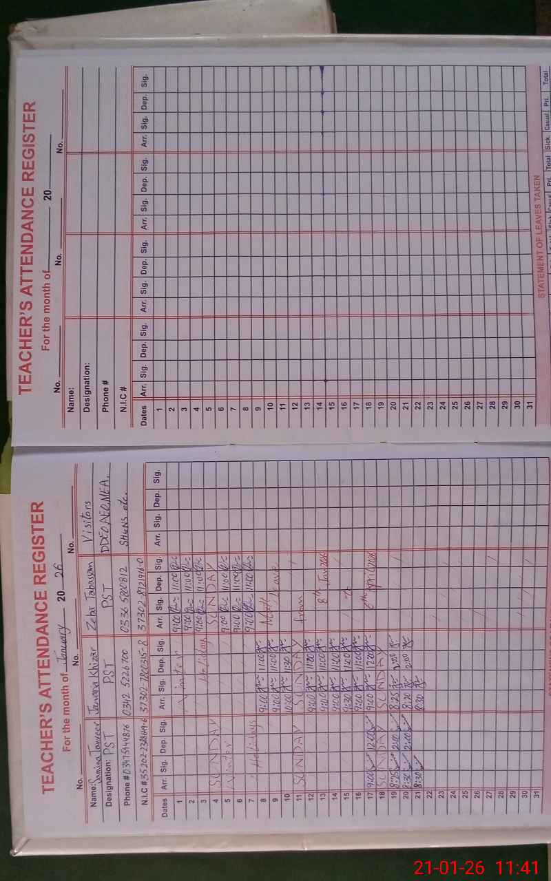 | Name: Sa**** Ta**** Designation: (School Headmaster's/Headmistress's) Headmaster Phone/Cell Number: 03**** |