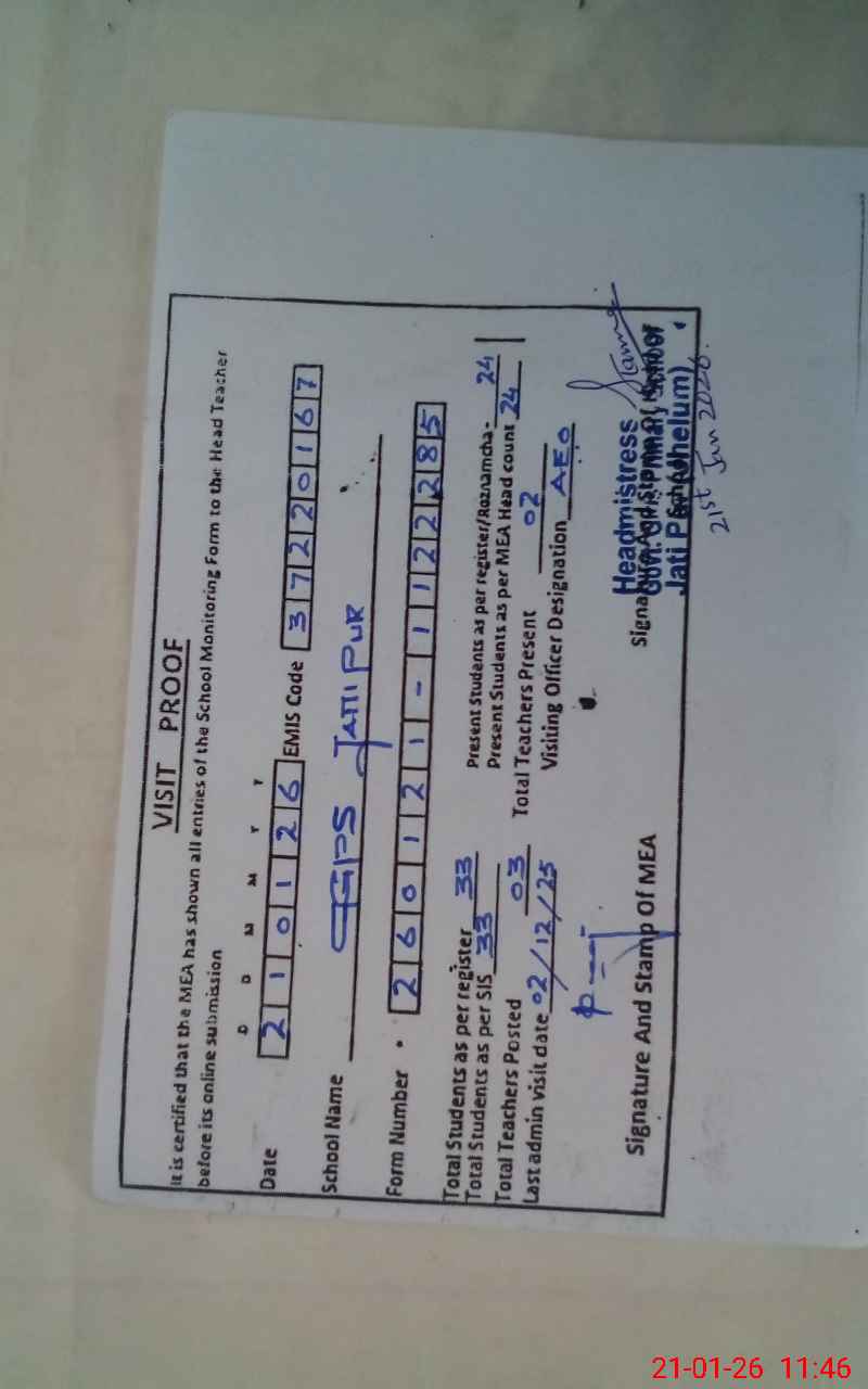 | EMIS Code: 37220167 | Name of School: GGPS JATIPUR | |||