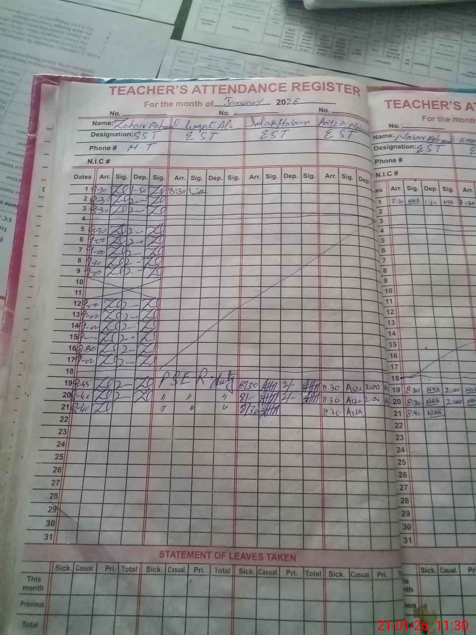| 35**** | Zu**** Fa**** | PST Science/Maths | Regular | 0 | 0 | 31 | 0 | 0 | 0 | 0 | 0 | 0 | Absent (Un-Authorized) |