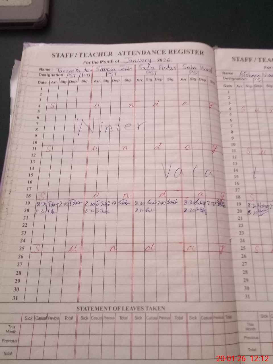 | No. of Students Present - Female | 0 | 0 | 0 | 0 | 0 | 0 | 0 | 9 | 14 | 5 | 0 | 0 | 28 | |||