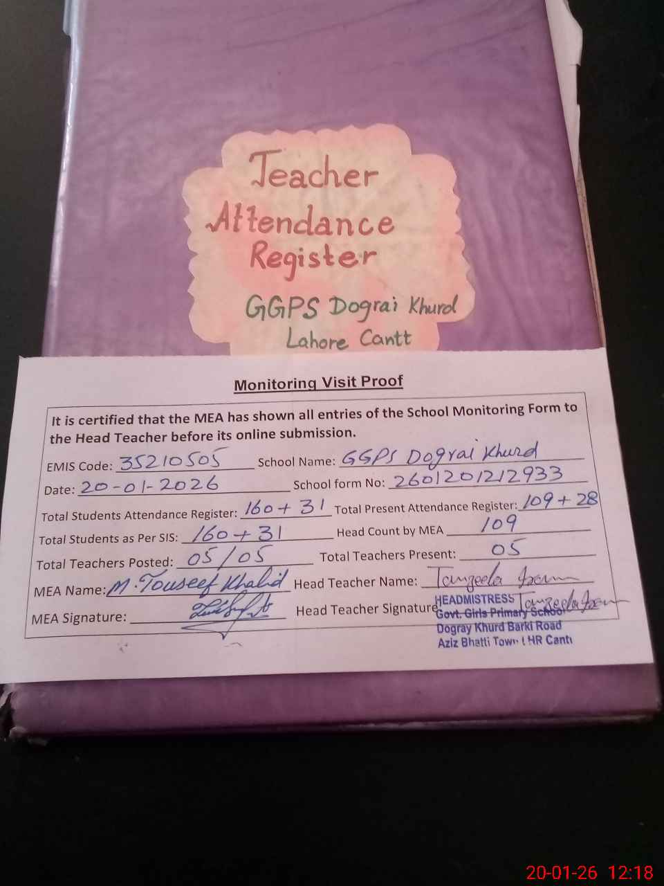 | EMIS Code: 35210505 | Name of School: GGPS DOGRAI KHURD | |||