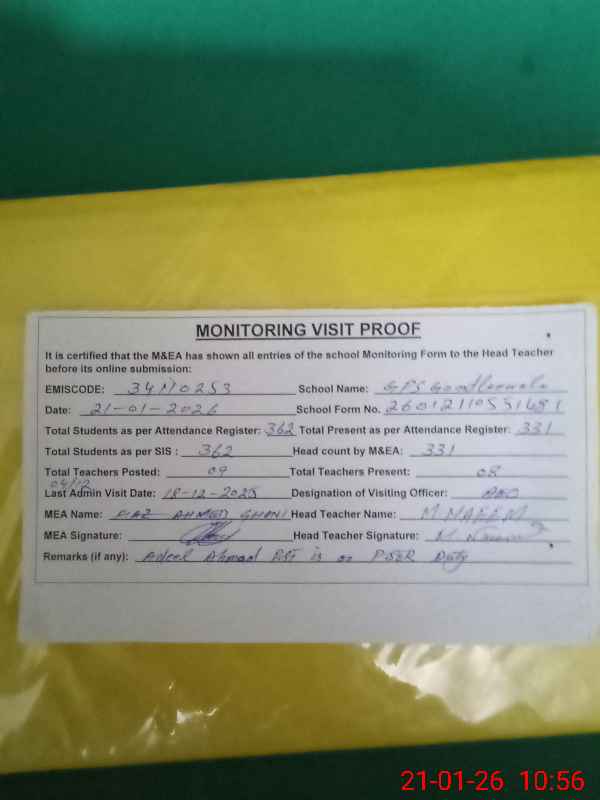 | EMIS Code: 34110253 | Name of School: GPS GONDLAN WALA | |||