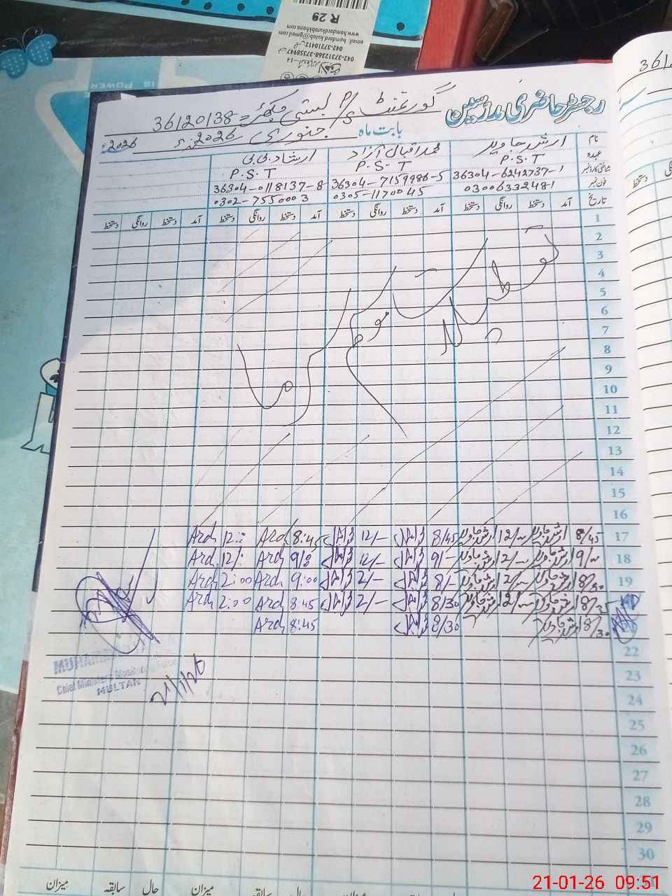 | Name: Ar**** Ja**** Designation: (School Headmaster's/Headmistress's) HEADMASTER Phone/Cell Number: 03**** |