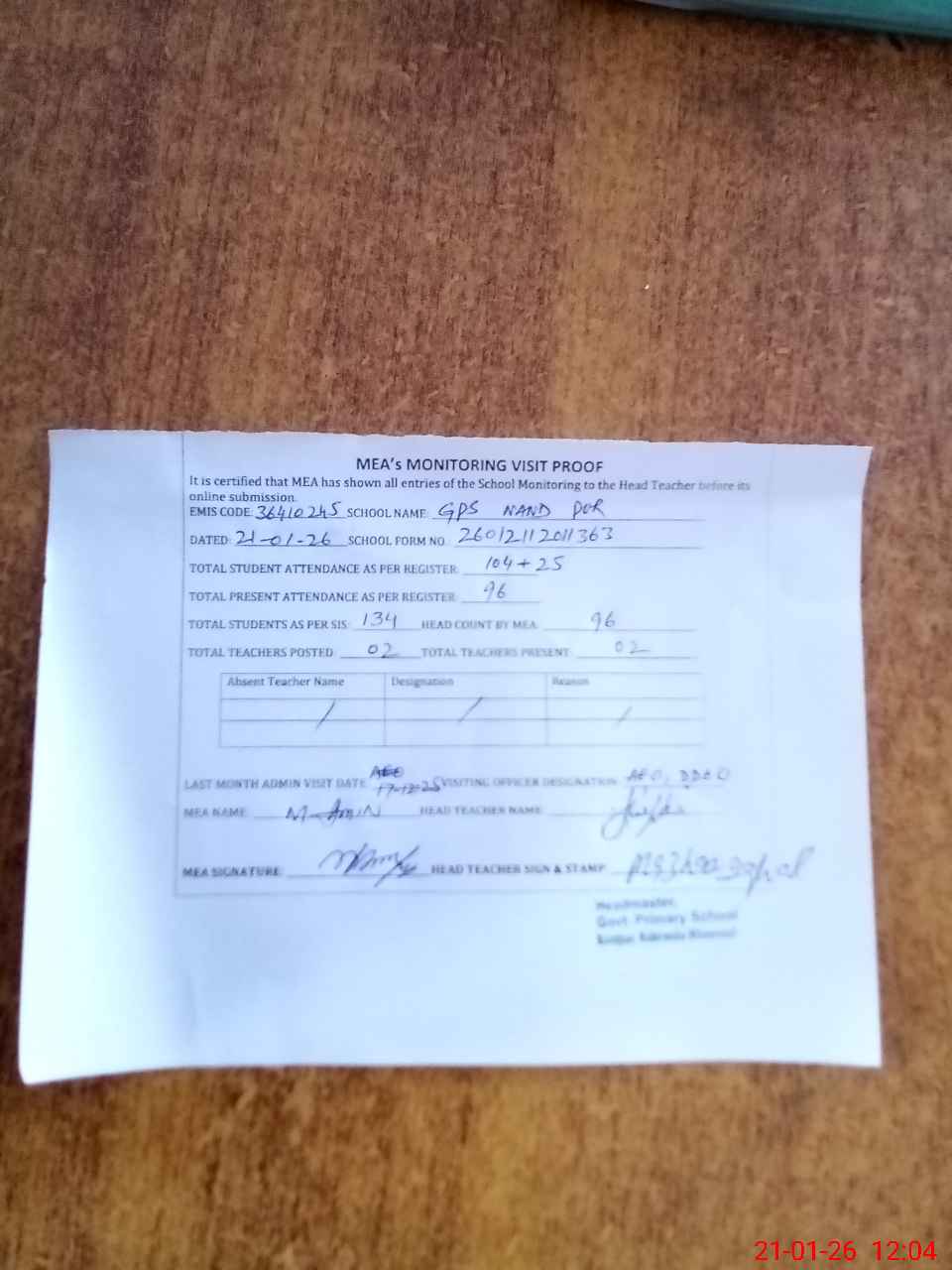 | EMIS Code: 36410245 | Name of School: GPS NAND PUR, SARAI SIDHU | |||