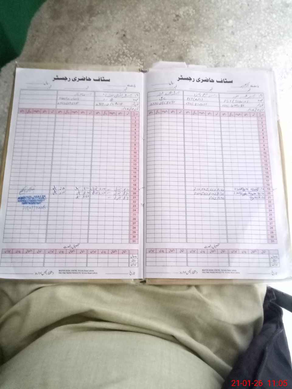 | CNIC | Full Name | Designation | R/C | Absence During Last Calender Month |
