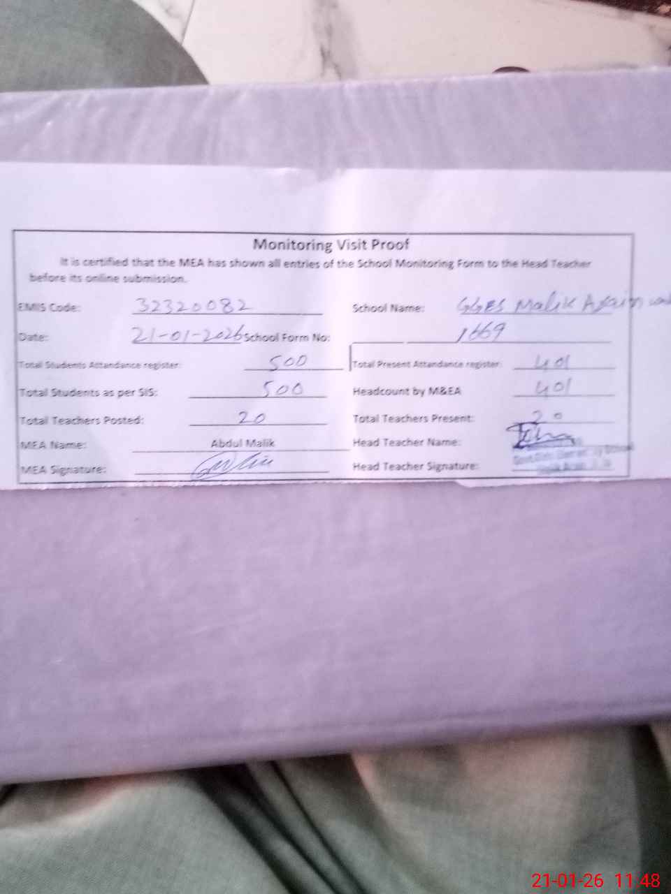 | EMIS Code: 32320082 | Name of School: GGES MALIK ARAIN WALA | |||