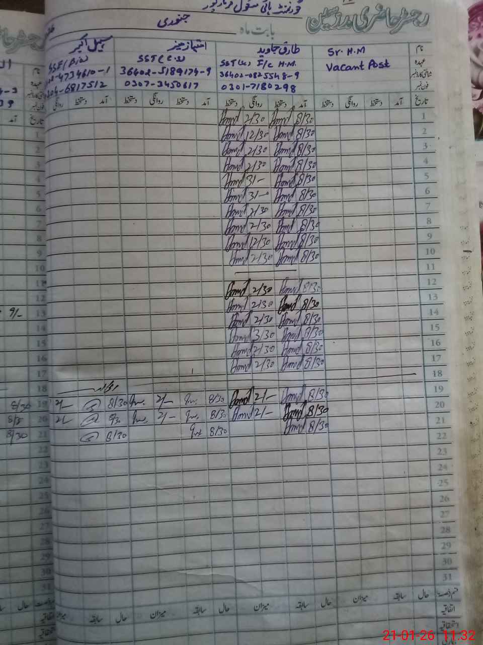 | Name: Ta**** Ja**** Designation: (School Headmaster's/Headmistress's) SST Phone/Cell Number: 03**** |