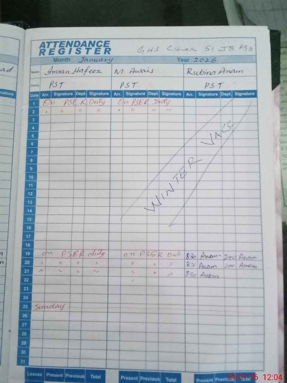 | 33**** | Mu**** Ta**** | CLERK | Regular | 3 | 0 | 0 | 0 | 0 | 0 | 0 | 0 | 3 | Casual |