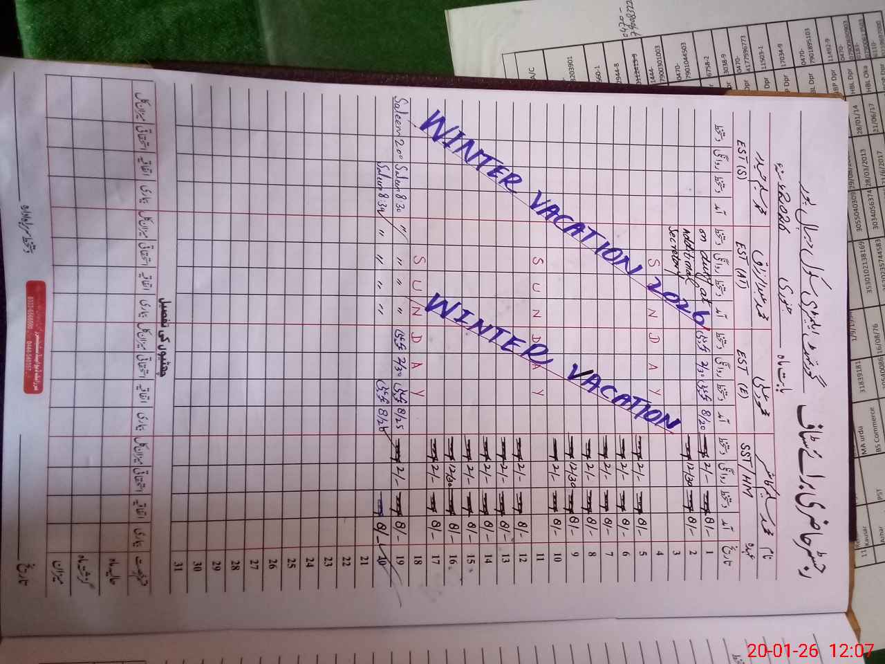 | Monitoring Date: 20-01-2026 | Start Time: 20-01-2026 12:05 PM | End Time: 20-01-2026 12:32 PM | Name of MEA: BA**** HU**** SH**** | |