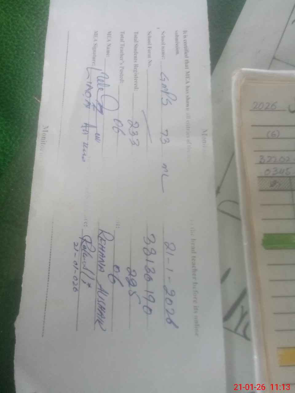 | Certified that this School was Inspected by the Undersigned MEA/DMO Today and the Information Stated Above is as Per Record. | |||||