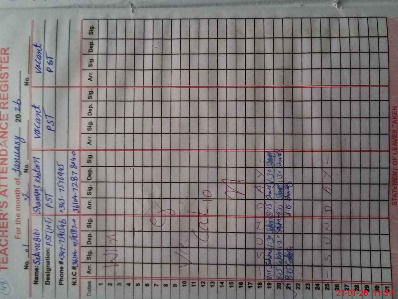 | Name: Sa**** Bi**** Designation: (School Headmaster's/Headmistress's) PST Phone/Cell Number: 03**** |