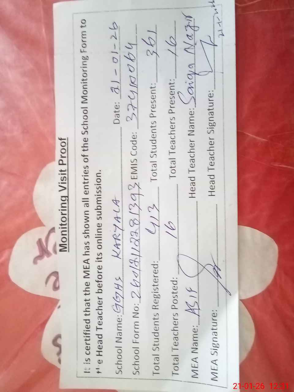 | EMIS Code: 37410064 | Name of School: GGHS KARYALA | |||