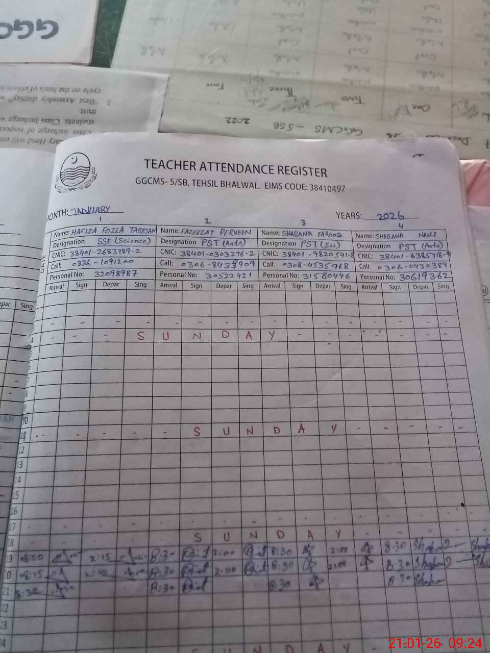 | Name: FO**** TA**** Designation: (School Headmaster's/Headmistress's) SSE (SCIENCE) Phone/Cell Number: 03**** |