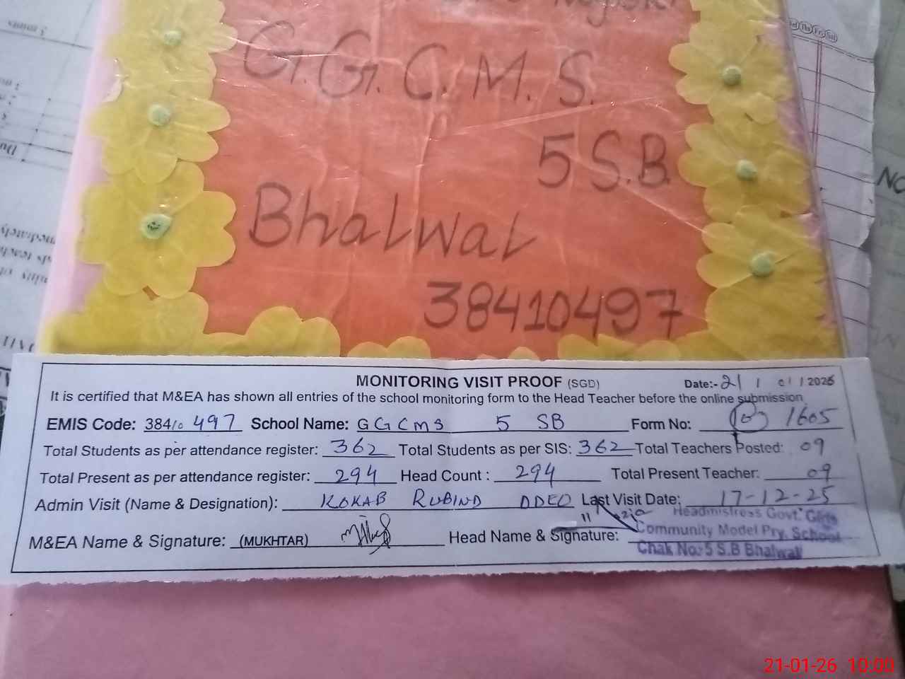 | EMIS Code: 38410497 | Name of School: GGCMS CHAK NO.5 SB | |||